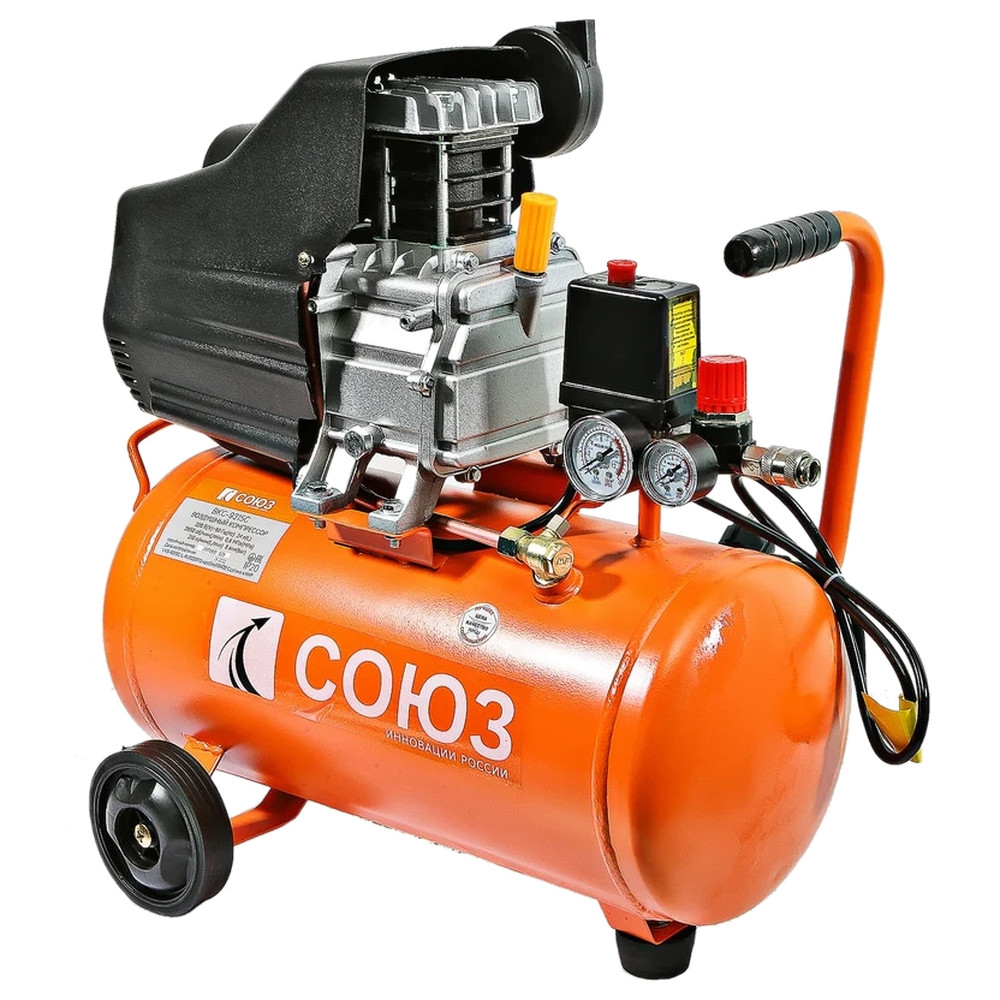 Воздушный компрессор СОЮЗ 1500Вт 24л ВКС-9315С - подходит для снабжения пневмоинструментов и оборудования рабочим давлением не более 8 бар. Специальный кожух, предусмотренный в конструкции агрегата, надежно защищает двигатель от ударных воздействий, а также от попадания внутрь пыли, грязи и влаги. Модель работает от однофазной электросети, мощность потребления - 2000 Вт.