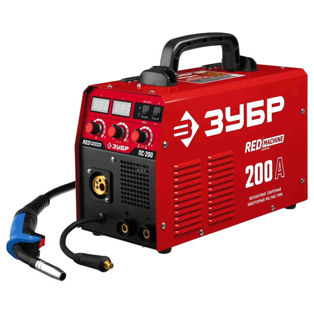 Сварочный полуавтомат ЗУБР инверторный 200А ПС-200 - предназначен для сварки проволокой в среде защитных газов. Поддерживает функцию ручной дуговой сварки MMA штучным электродом.